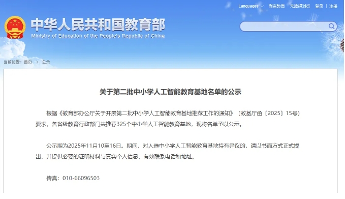 최근 교육부 웹사이트에 <제2진 중소학교 인공지능교육기지 명단에 관한 공고>가 발표되였다. 그중 길린성 선정명단은 다음과 같다.