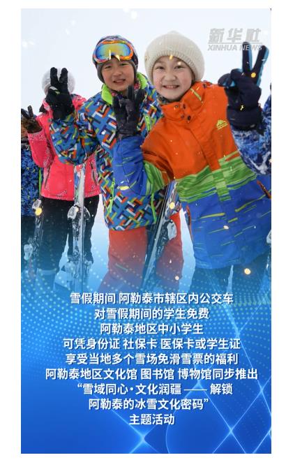 눈방학기간 알타이지역 관할구역내 뻐스는 학생들에게 무료로 제공되는바 알타이지역 중소학생들은 신분증, 사회보장카드, 의료보험카드 또는 학생증을 제시하면 여러개 스키장에서 무료티켓혜택을 받을 수 있다. 알타이지역의 문화관, 도서관, 박물관은 ‘설원동심·문화윤강—알타이지역 빙설문화암호 해제’ 주제행사를 선보이게 된다.